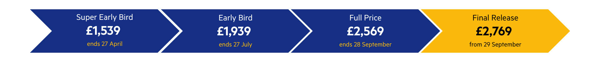 Super early bird: £1,539Early bird: £1,939